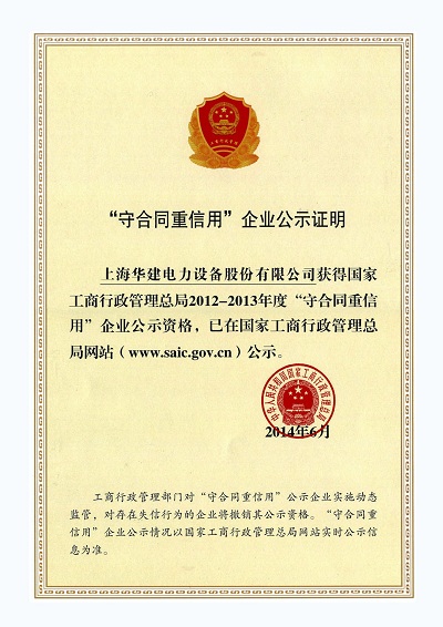 “守合同重信用”企业证书