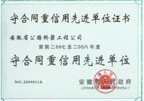 守合同重信用先进单位证书