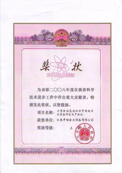 江苏省科技进步三等奖