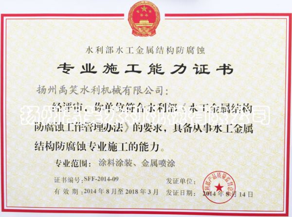 专业施工能力证书