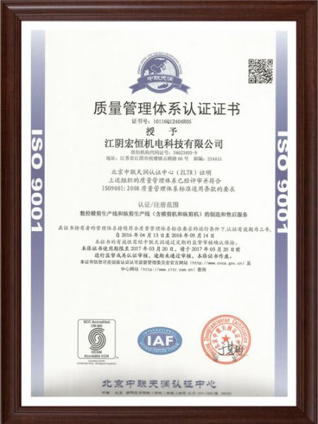 质量管理体系认证证书-中文