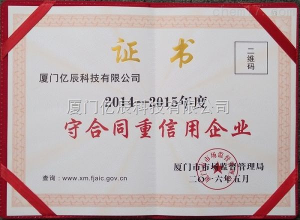 厦门市“守合同重信用企业”荣誉证书